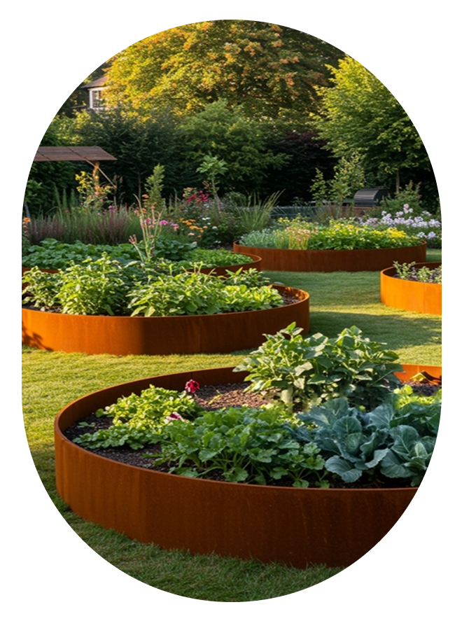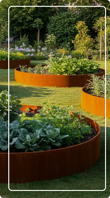 Our Corten steel edging develops a beautiful rusted patina, blending seamlessly into any landscape while protecting itself from corrosion.