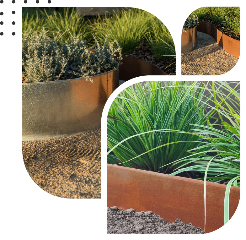 Our Corten steel edging develops a beautiful rusted patina, blending seamlessly into any landscape while protecting itself from corrosion.